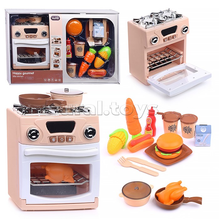 Бытовая техника "Плита" с посудой и продуктами, в коробке (цвет бежевый)