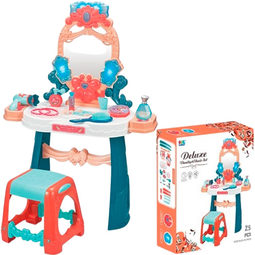 Игровой набор 16842 Столик с зеркалом 51х24,5х74 см., свет, звук, фен дует, 25 предметов, стул в комплекте