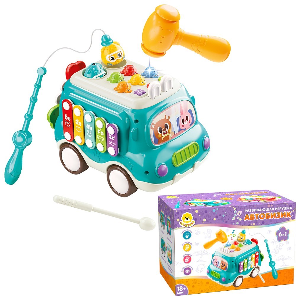 Комплектация: развивающая игрушка - 1 шт, удочка - 1 шт, молоток - 1 шт, палочка - 1 шт