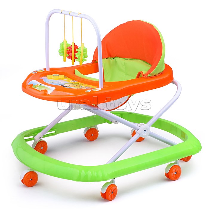 Ходунки с подвесными игрушками и музыкальным цветком (оранжевый-зеленый) пакете