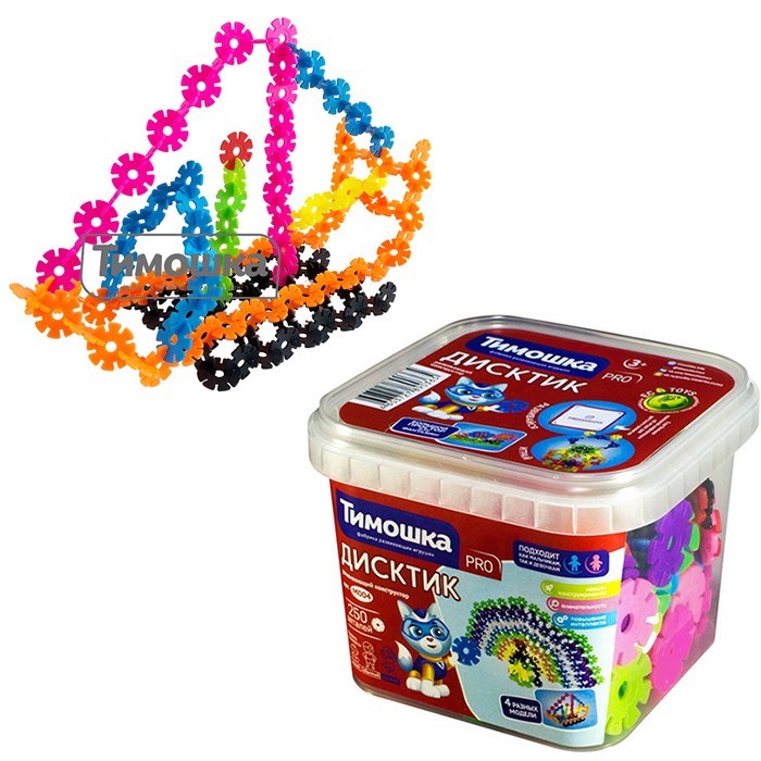Конструктор "ДисКтик" на 250 элементов относится к серии "Профи" и позволяет создать сложные объемные 3D-конструкции. Элементы складываются в различные геометрические фигуры, постройки, диковинных животных и другие объекты, помогая тренировать аналитическое и пространственное мышление, логику и мелкую моторику.