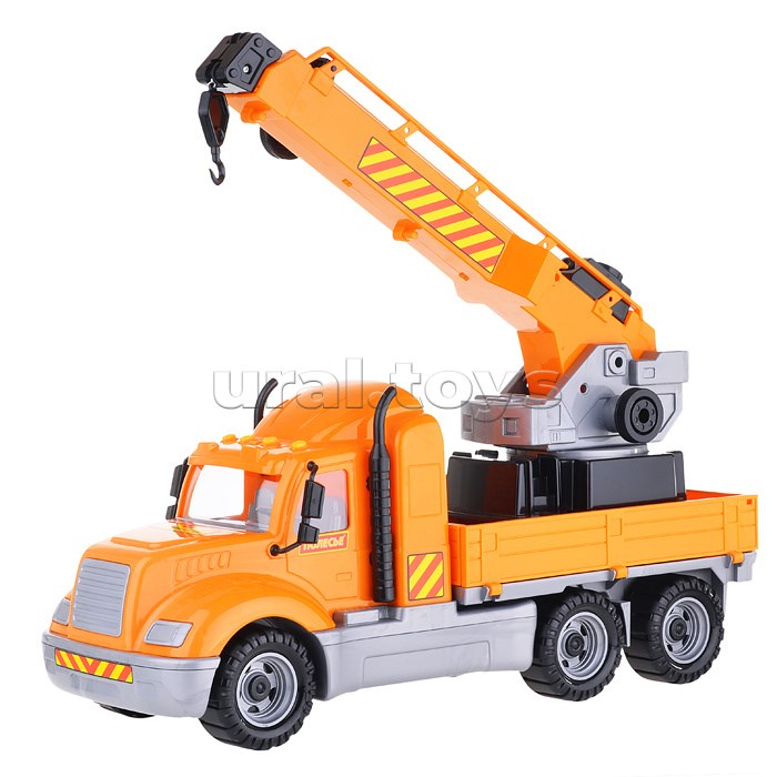 Майк, автомобиль-кран с поворотной платформой (в сеточке)