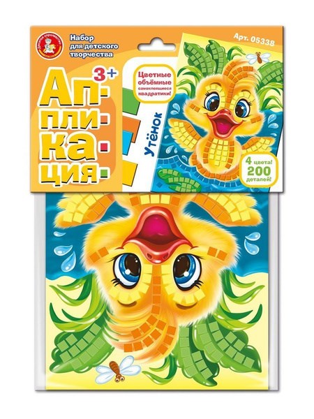 Набор для творчества Аппликация Утёнок 4 цв, 200 эл 05338