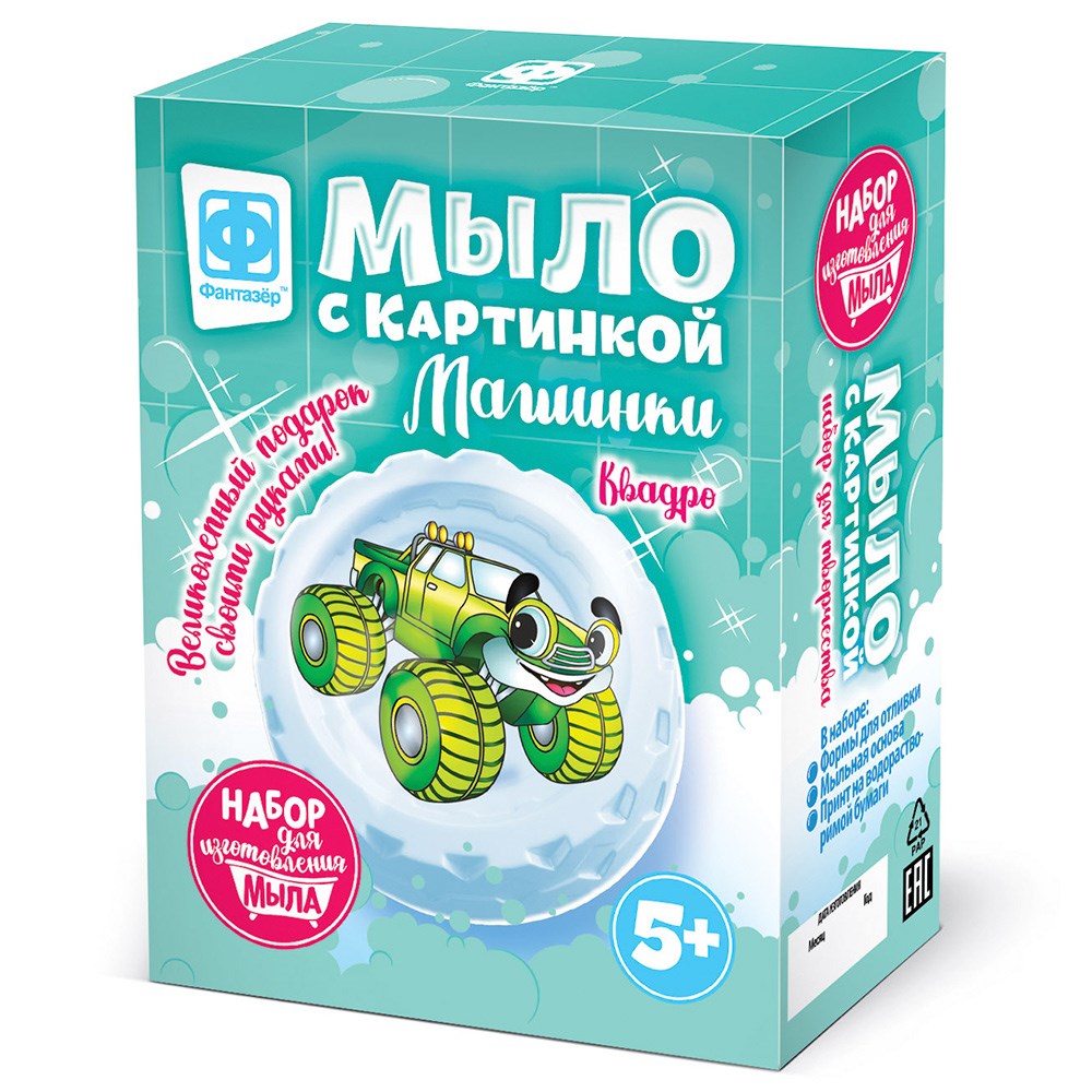 Набор для творчества Мыло с картинкой Машинки Квадро зеленый 980601 Фантазёр