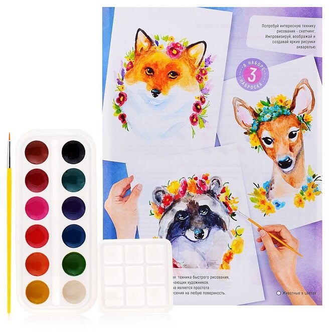 Набор для творчества Скетчинг акварелью "Животные в цветах" Рн-035 Lori