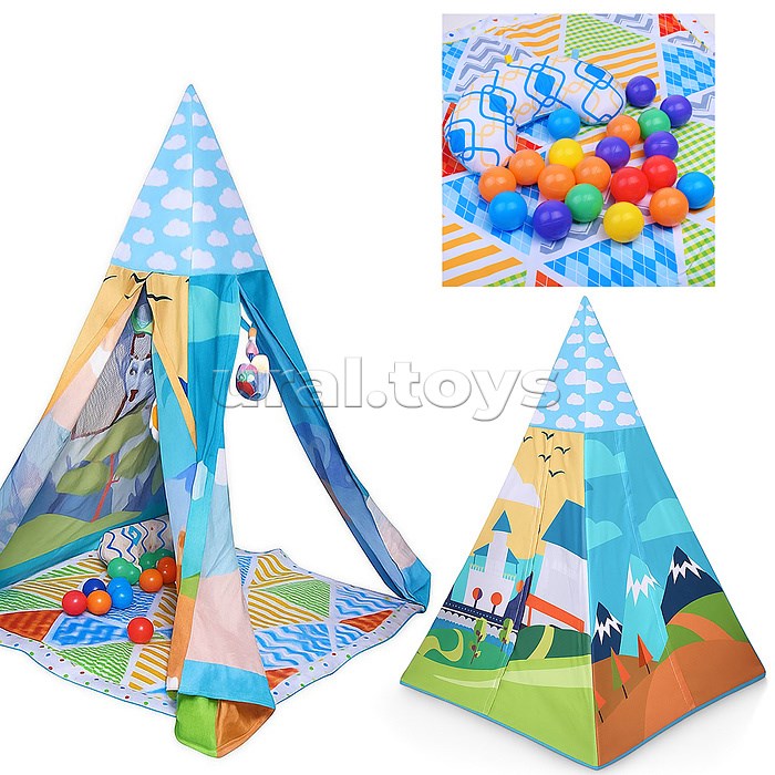 • В комплекте 3 мягкие погремушки, 20 пластиковых шаров (d=4.5 см.), музыкальный модуль