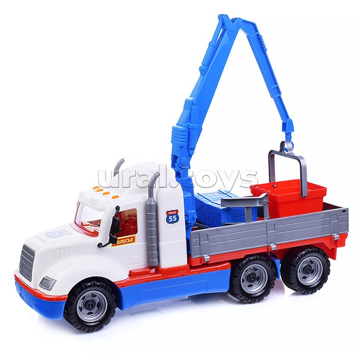 Автомобиль-кран с манипулятором "Майк" (бело-синий) (в сеточке)