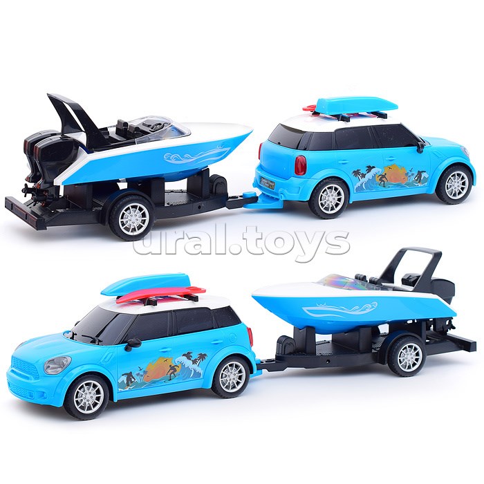 Автомобиль "Круиз" с катером на прицепе (в лотке)