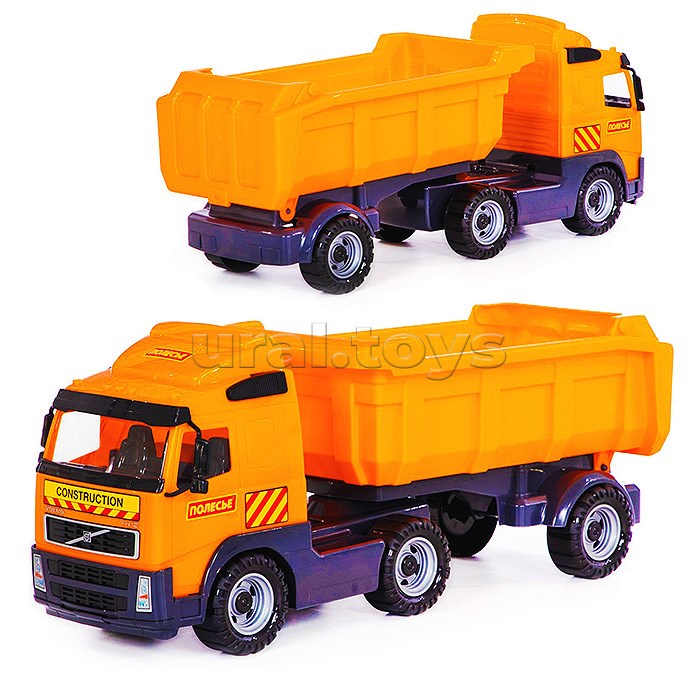• Полуприцеп автомобиля отсоединяется, поднимается кузов и открывается задний борт для разгрузки.