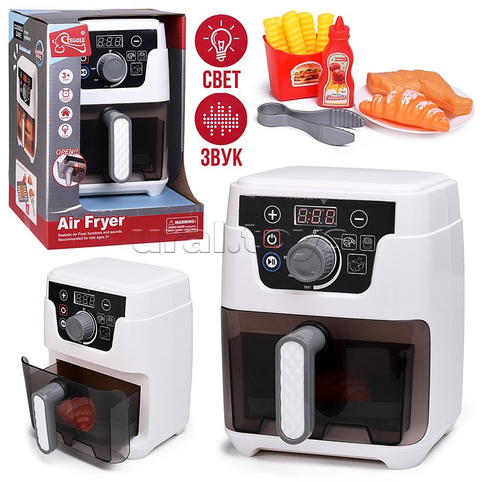 В комплекте: тарелка, щипцы, картофел фри, курица, круассан, кетчуп.