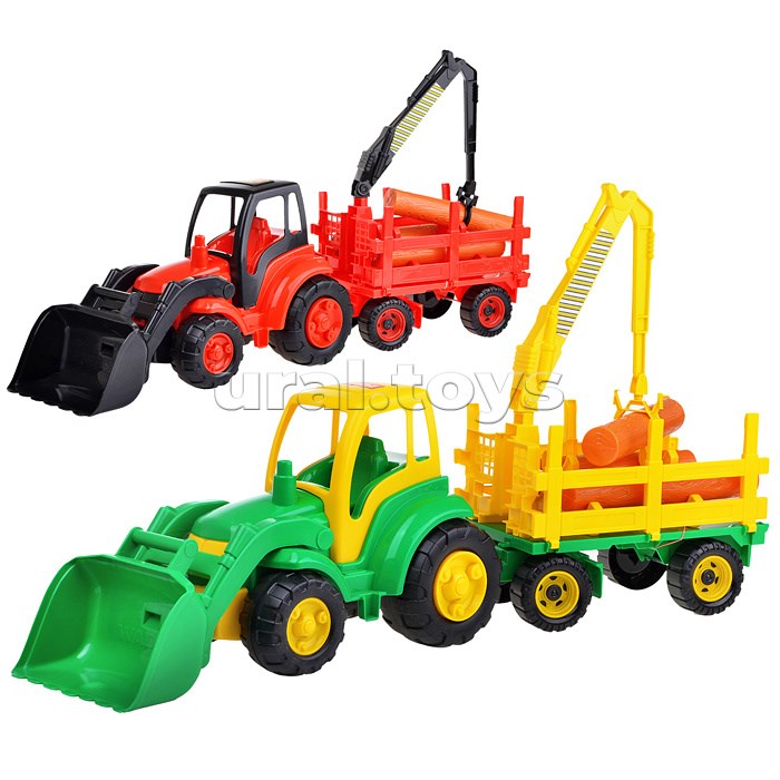 Конструкция трактора предполагает наличие лопаты с рычажным управлением, которая разнообразит игру в песочнице. В кабине предусмотрено место для фигурки водителя. Две пары колёс крепятся к прочным металлическим осям. Прицеп также имеет две пары колёс на металлических осях, передние колёса могут поворачиваться вправо и влево. Бортики прицепа при необходимости можно опустить. Прицеп оборудован подставкой для брёвен и подвижной стрелой для погрузки.