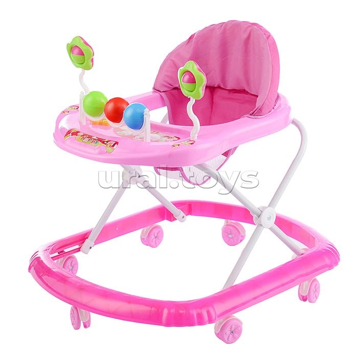 Ходунки "Шарики с цветочками" с погремушками и шарами (розовый) в пакете