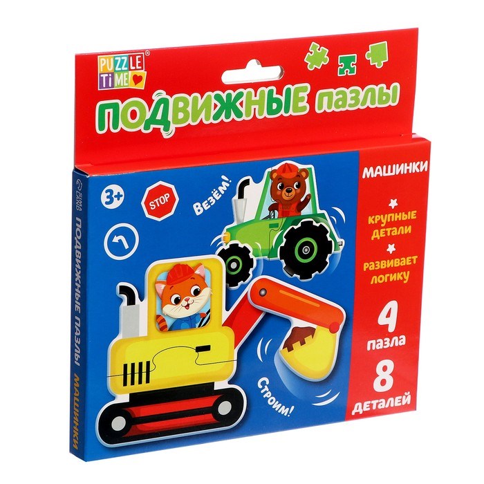 Макси-пазлы подвижные «Машинки» 4 пазла, 8 деталей