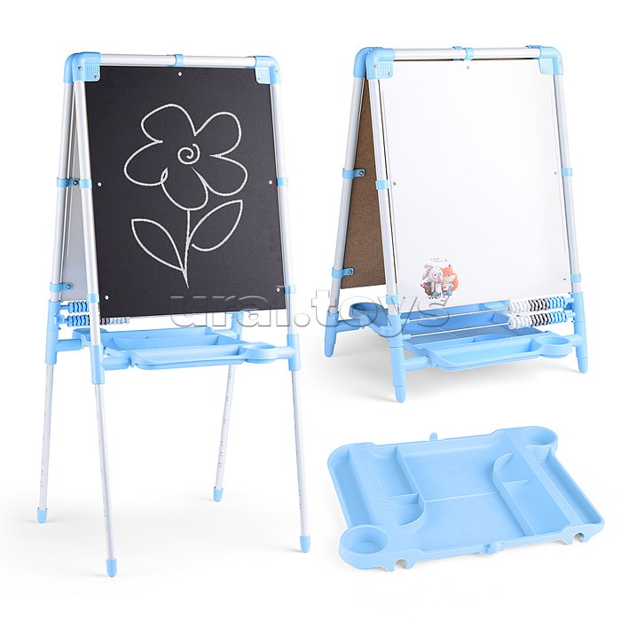 -Две рабочие поверхности: меловая – для рисования мелом; магнитная – для рисования маркерами на водной основе и игр с магнитной азбукой и мозаикой (в комплект не входит).