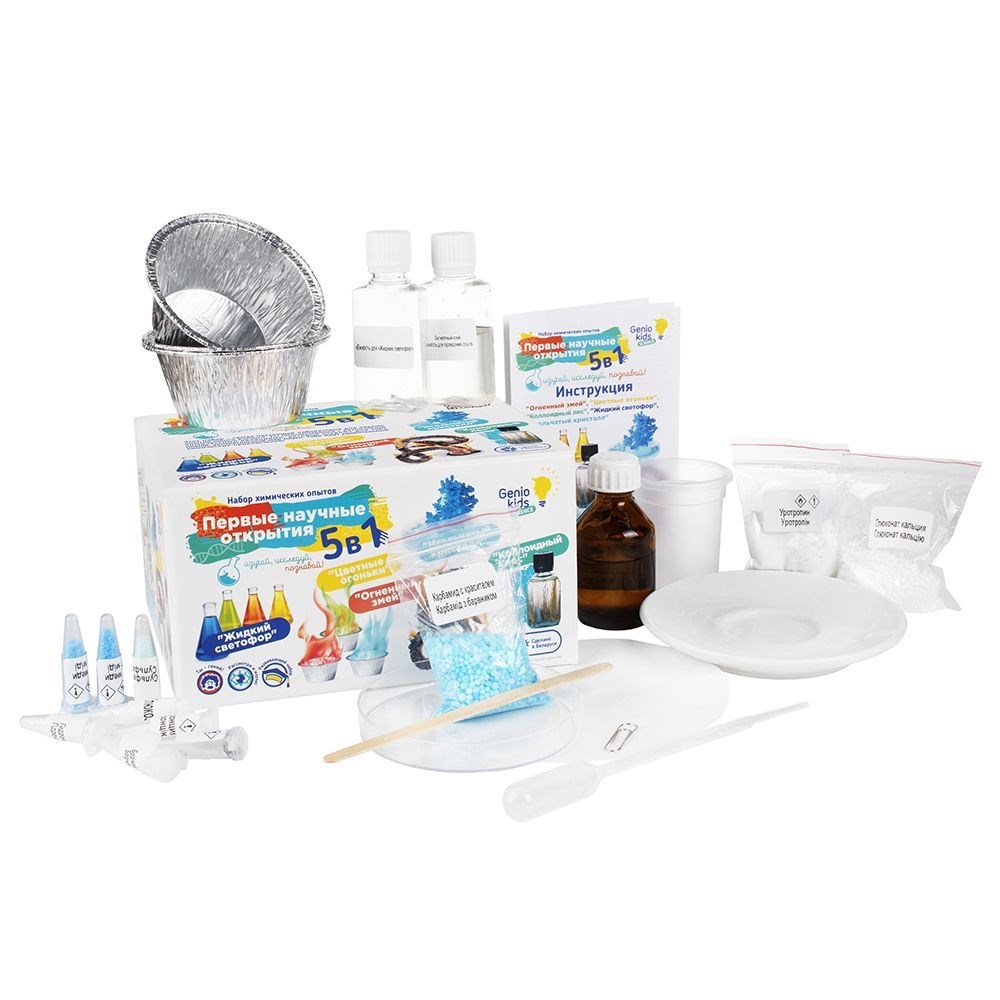 Комплектация: В состав набора входят опыты: Огненный змей; Цветные огоньки; Коллоидный лес; Жидкий светофор; Игольчатый кристалл.
