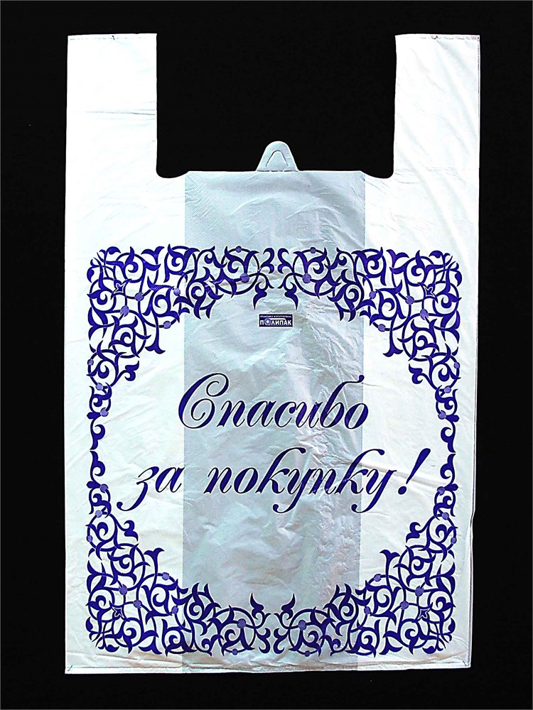 пакет-майка "супер спасибо" белый/чёрный 50+25*80 см, 50 мкм