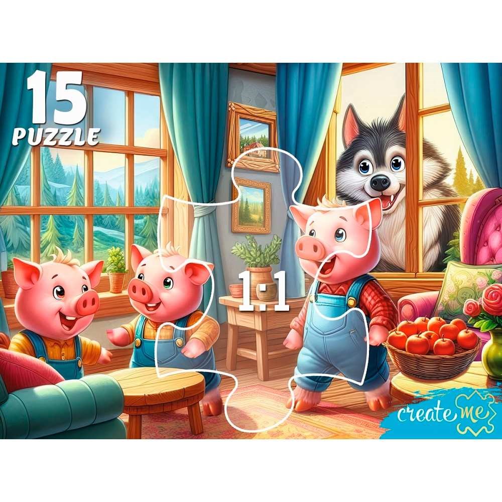 Пазл 15 Макси Три веселых поросенка и волк УК15-0206