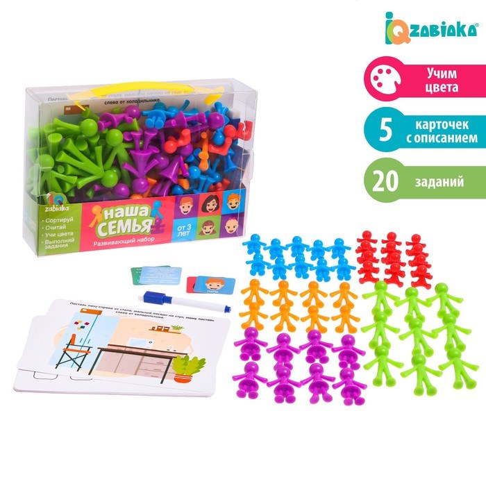 С развивающим набором «Наша семья» ребёнок в лёгкой игровой форме научится считать, распределять по цветам и классифицировать фигурки по разным признакам.