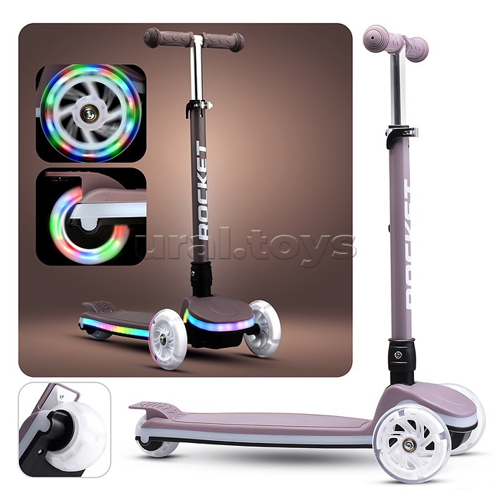 Самокат трёхколёсный ROCKET колёса световые PU, цвет мокко