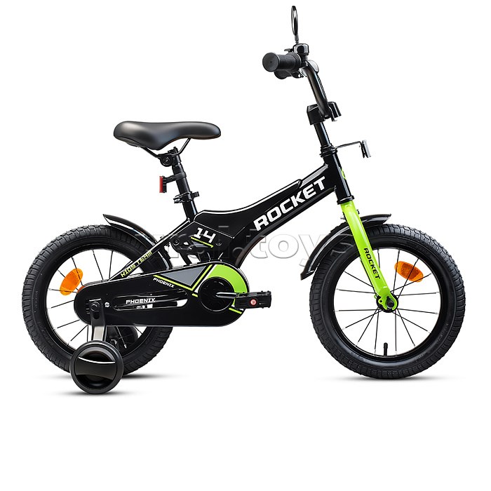 Велосипед 14" Rocket Phoenix, цвет черно/зеленый